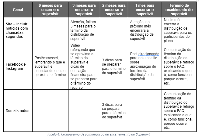Tabela 4. Cronograma de comunicação de encerramento do Superávit